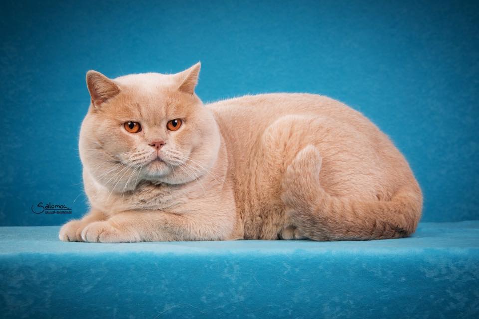 • Ulrich entwickelt sich zu einem wunderschönen Kater. Sein Körperbau ist  stämmig, kurz und rund. Das kurze, dichte Fell ist creme und streifenfrei durchgefärbt. Aber das wichtigste für mich ist sein einmalig verschmusstes und anhängliches Wesen. Mein Schatz ist sehr gelassen und cool auch in Ausnamesituationen wie zu Beispiel auf Ausstellungen oder beim Tierarzt.